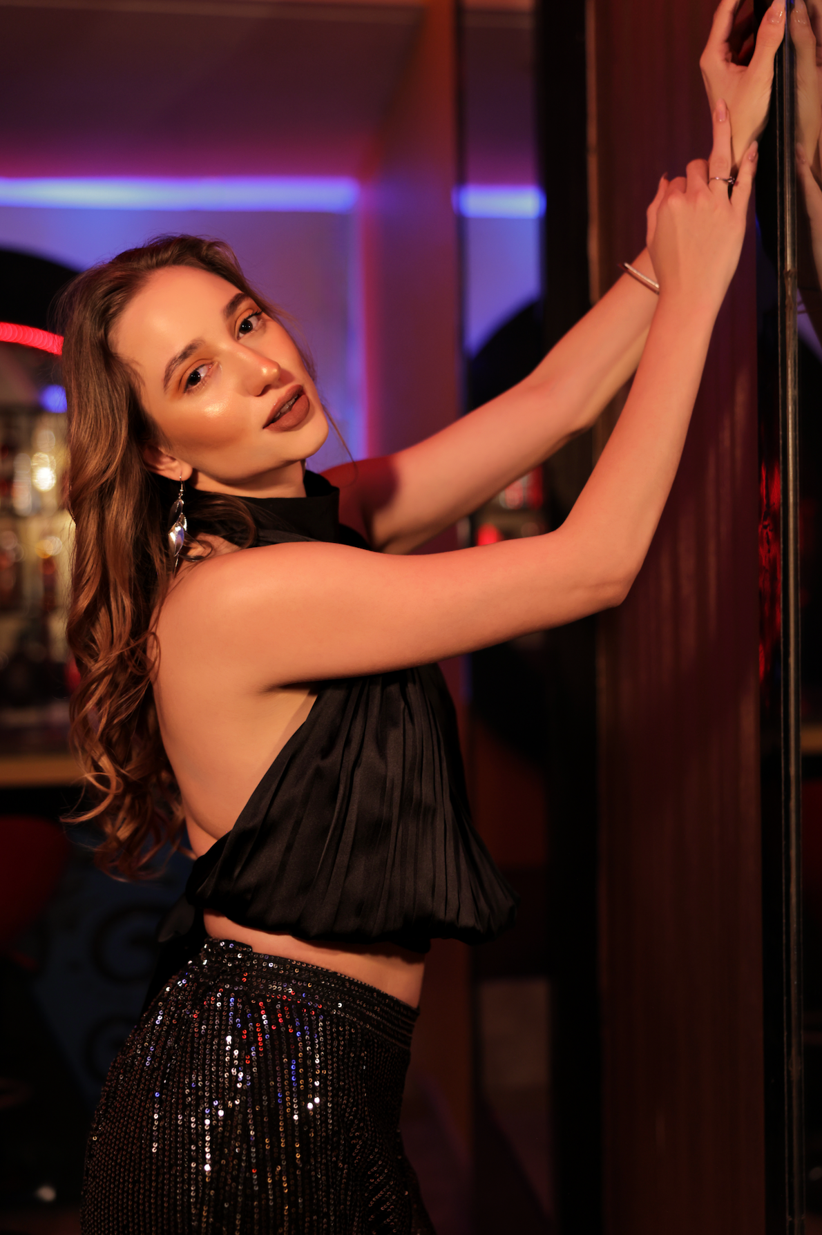 Inspired by the rich black satin and pleated silhouette, this name evokes the elegance and mystery of a lunar eclipse at midnight—bold, shadowy, and unforgettable.